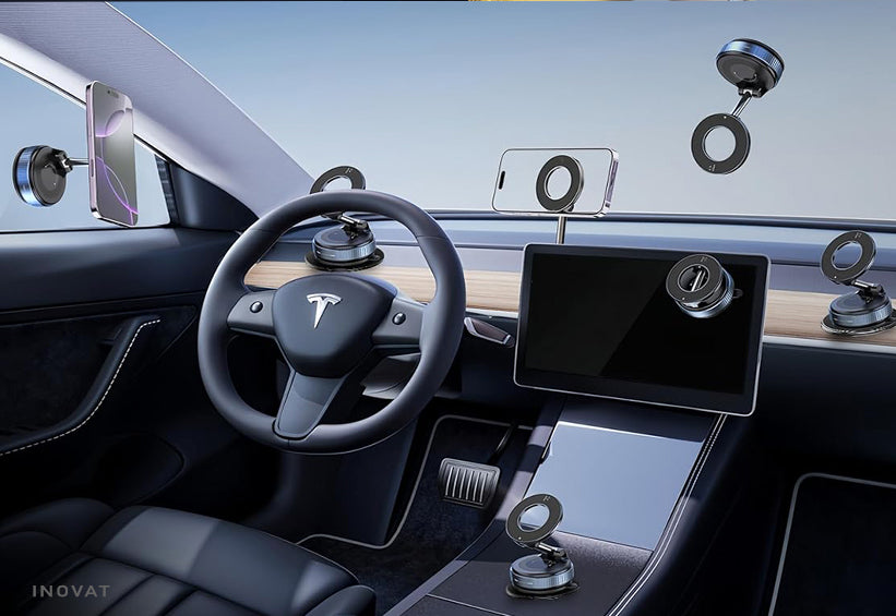 Soporte Celular magnético MagSafe para vehículos, oficina, videos - Extra fuerte con Ventosa, Giro 360° ajustable, iPhone y Android
